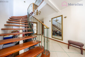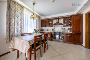 Eramu on nutikalt projekteeritud, et pakkuda avarust ja funktsionaalsust. Majja sisenedes on avar esik. Vasakule jääb kodu südameks olev päevapäikesepoolne suurte akendega elutuba ja paremat kätt jääb funktsionaalne köök. Eritellimusel kirsipuidust valmistatud köögimööbel on hästi läbimõeldud ning sisaldab kõike eluks vajaminevat (keraamiline elektripliit ahjuga, nõudepesumasin, õhupuhasti, külmkapp). Köögi põrandal on mugavaks hoolduseks keraamilised plaadid.